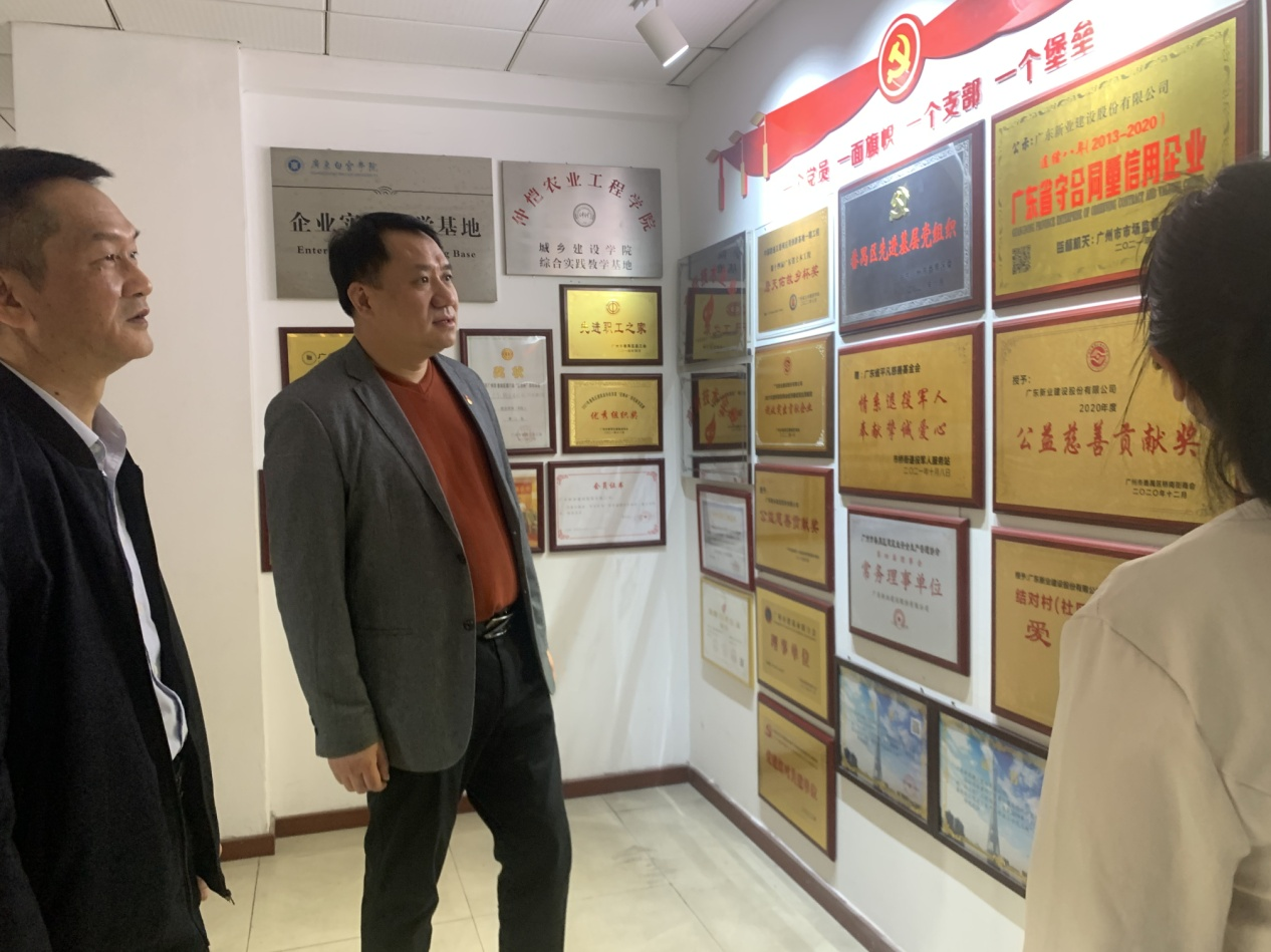 袁局、陈副局一行在会长陈剑兰女士的陪同下,参观了我司(6t体育简称)荣誉墙,细数了我司历年来的工程业绩和社会贡献,大致了解了我司的在建项目情况,充分肯定了我司为番禺区所作出的贡献。