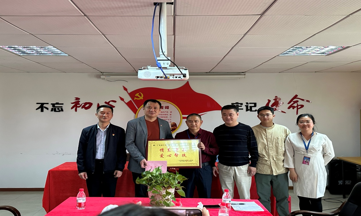 3月3日,番禺区退役军人事务局袁勇局长、陈冠强副局长一行四人莅临广东省平凡慈善基金会赠匾致信,基金会秘书长许期荛先生、党支部书记罗林龙先生、会长陈剑兰女士、秘书代表许洋龙先生出席了赠匾致信仪式。