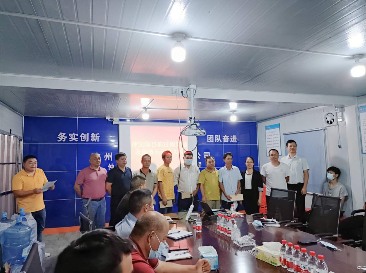 2022年6月21日,仲元项目过程奖励及保节点动员大会在仲元项目部隆重召开,会议由公司办公室主任权国钰主持,公司总经办、工程部、工会、项目部部分管理人员及劳务公司代表参加了会议。