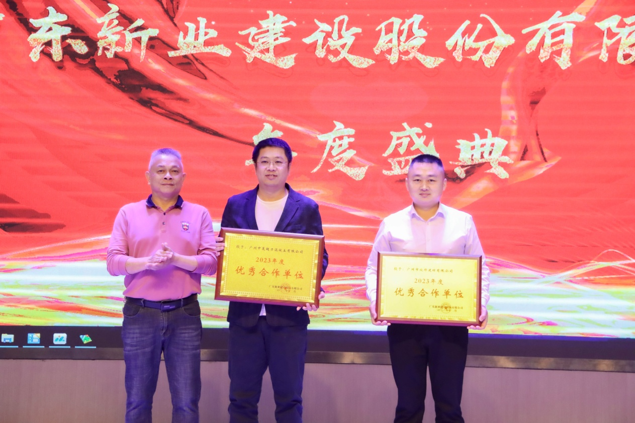 公司的发展离不开优秀的供应商、分包商合作伙伴的支持,借年度盛典之际,公司组织行政副总刘心泉先生、工程副总张华明先生以及房建技术总工容文雄先生对广州中昊超力混凝土有限公司、广州运成土石方工程有限公司、广州市欣烨建材有限公司、广州市利丰基础工程有限公司、广州弘盛建筑装饰工程有限公司等五家优秀合作伙伴颁发荣誉奖项。