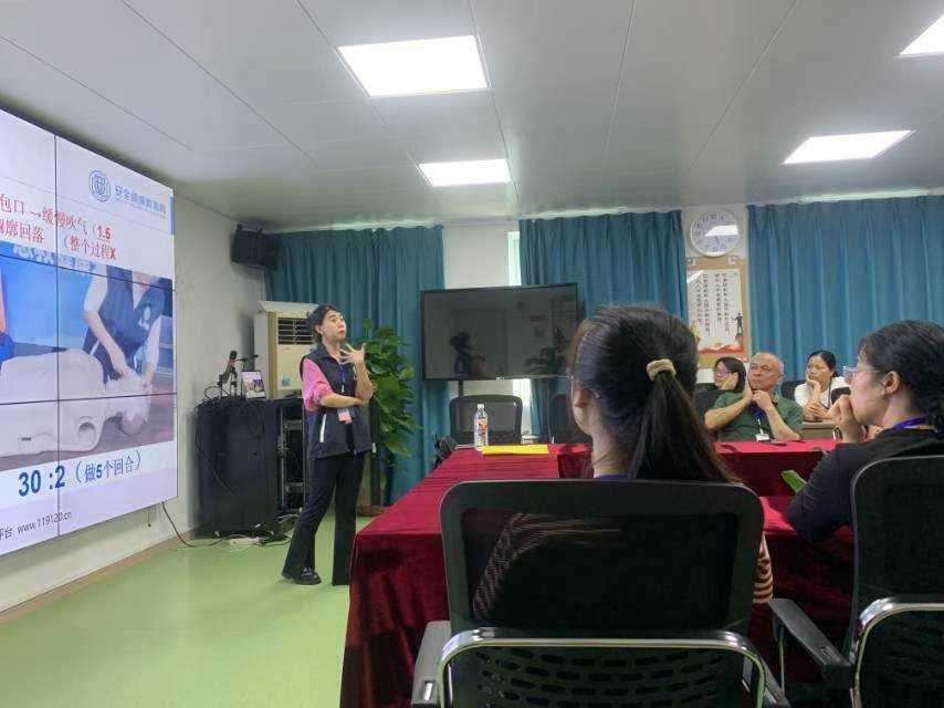 讲座过程中,赵老师围绕突发应急事件的急救处理、癌症的筛查预防以及心肺复苏、人工呼吸等应急救护知识进行了详细讲解,凭借丰富的经验,用生动的语言与肢体动作,强调了心肺复苏等急救方法的动作要领,并带领大家一起进行CPR操作,活跃了现场氛围。最后,希望大家一起重视个人健康管理,重视疾病的早期预防,切实提高个人健康意识。